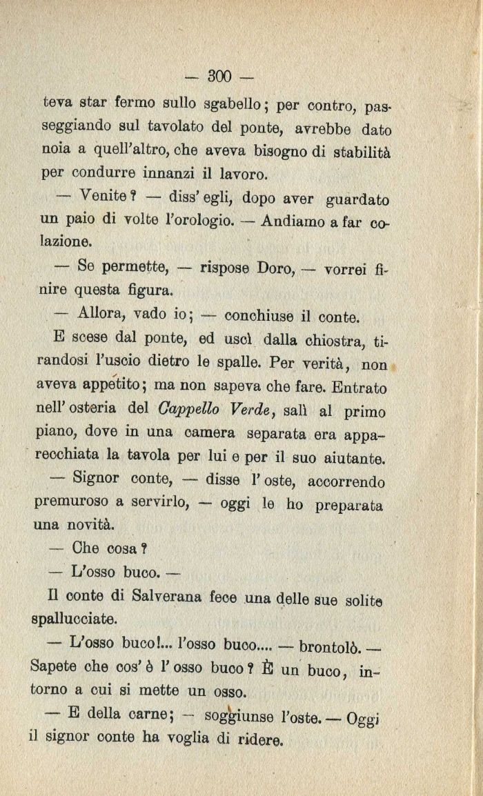 — L'osso buco!... l'osso buco.... — brontolò. — Sapete che oos' è l'osso buoo ? È un buco| intorno a cui si mette un osso.