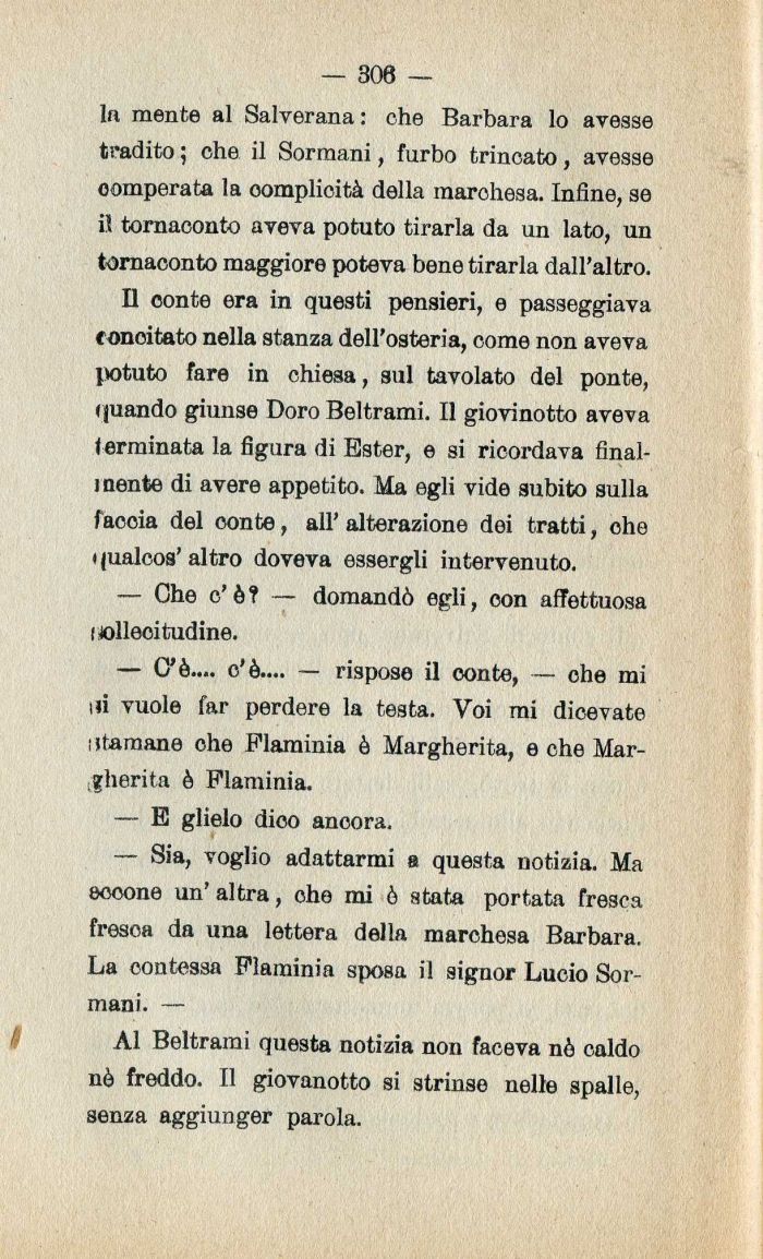 — Cò.... o'è.... — rispose il conte| — che mi ni vuole far perdere la testa. Voi mi dicevate ì ita mane ohe Flaminia è Margherita| e che Margherita è Flaminia.