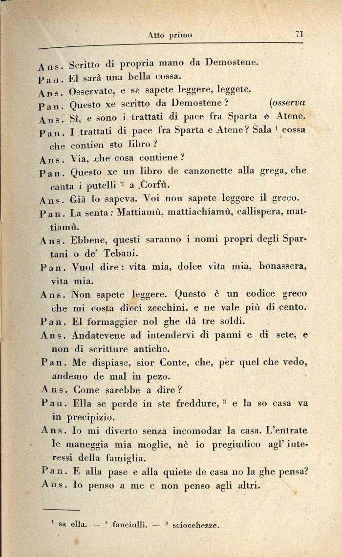 Ans. Non sapete leggere. Questo č un codice greco che mi costa dieci zecchini, e ne vale pių di cento.
