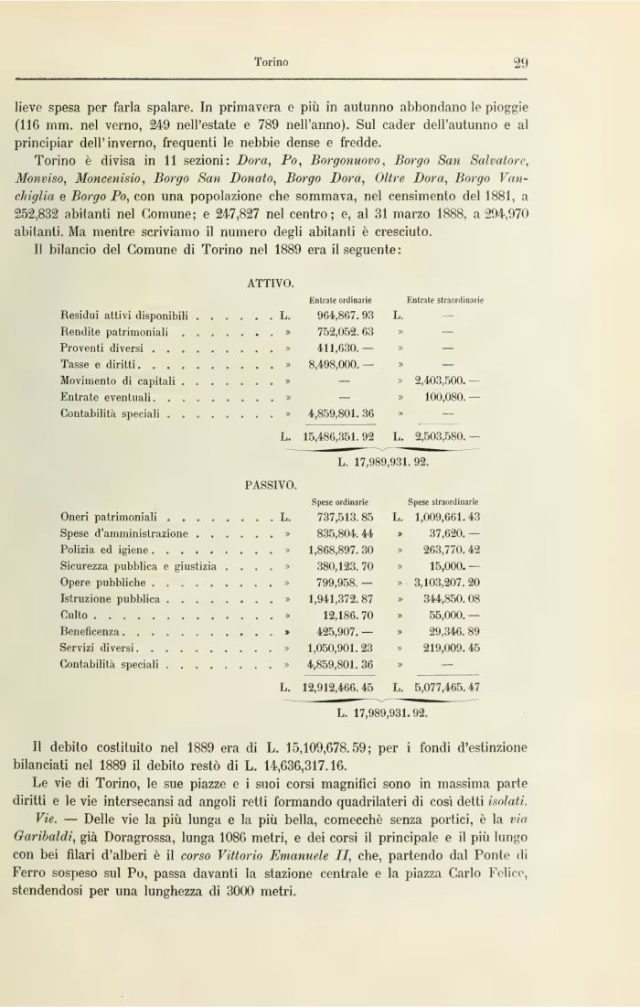 Il bilancio del Comune di Torino nel 1889 era il seguente: