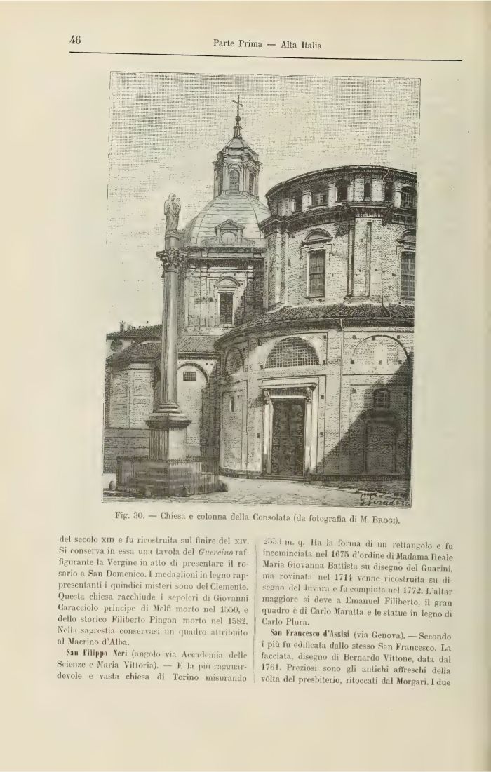 Fig. 30. — Chiesa e colonna della Consolata (da fotografia di M. Brooi).