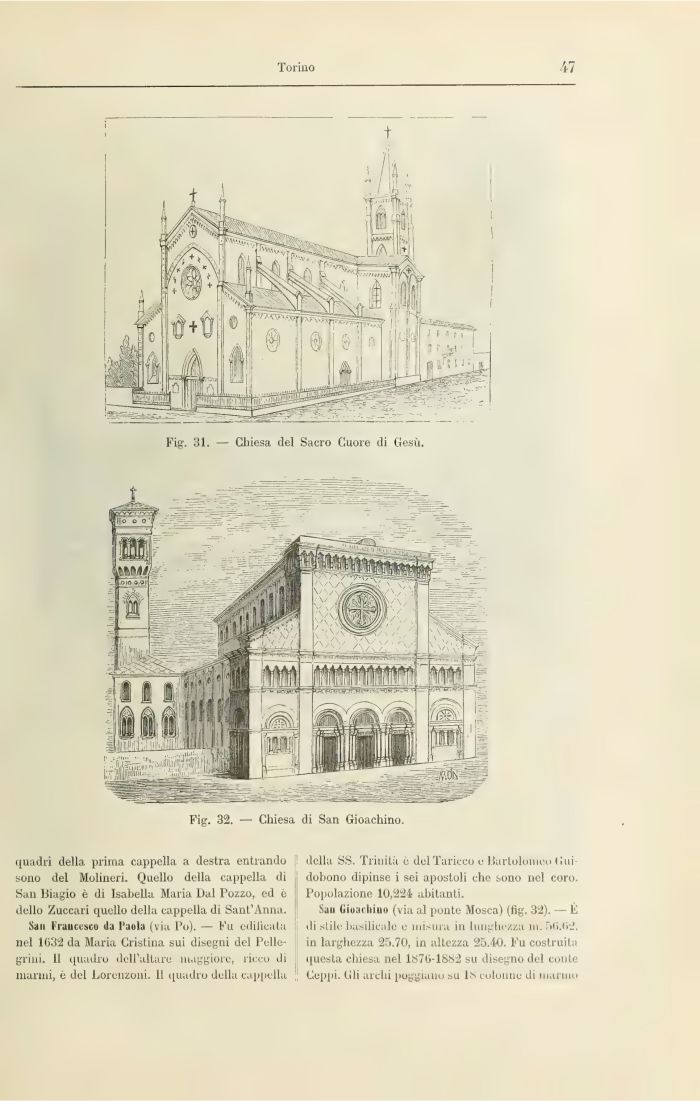 San Gioachino (via al ponte Mosca) (fig. 32). — È di stile basilicale o misura in lunghezza ni. 50.02. in larghezza 25.70, in altezza 25.40. Fu costruita questa chiesa nel 1870-1882 su disegno del conte Coppi. Gli archi poggiano su IN colonne di marmo