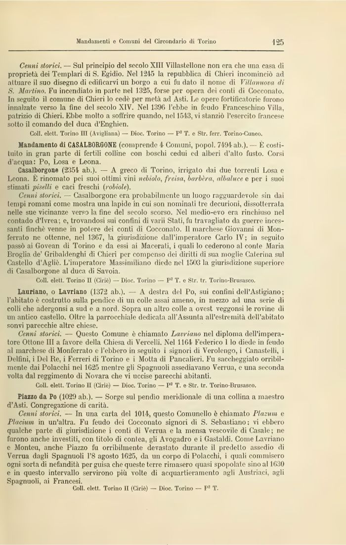 Coli, elett. Torino II (Ciriè) — Dioc. Torino — P2 T. e Str. tr. Torino-Brusasco.