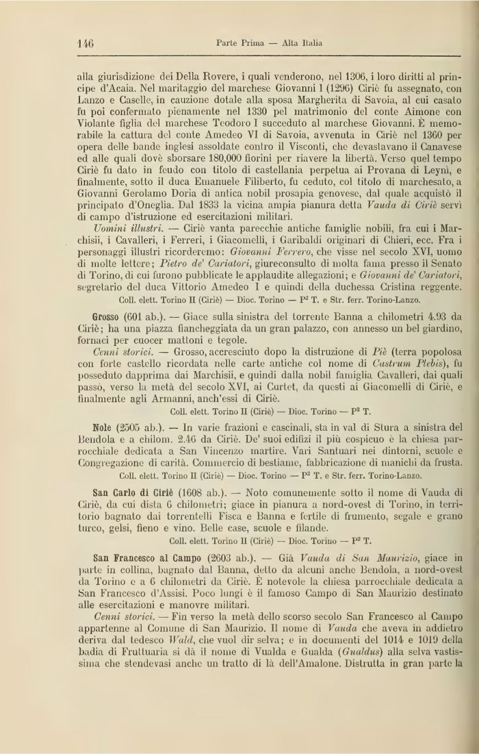 Coli, elett. Torino II (Ciriè) — Dioc. Torino — P2 T. e Str. ferr. Torino-Lanzo.