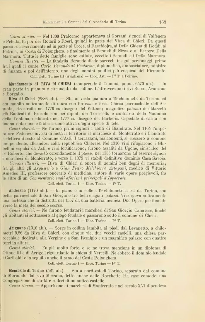 Uomini illustri. — Riva di Chieri si onora di uomini ben degni di memoria; fra gli altri gli Argusterio e Gian Pietro Melchiorre Astapani, medico di Vittorio Amedeo III, professore onorario di medicina, autore di varie opere pregievoli, fra le altre di un Commentario sugli aforismi principali d'Ippocrate.
