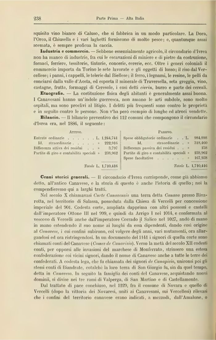 Bilancio. — Il bilancio preventivo dei 112 comuni che compongono il circondario d'Ivrea era, nel 1886, il seguente: