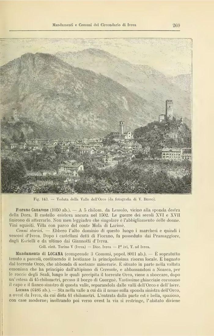 Fiorano Ganavese (1050 ab.). — A 5 chilom. da Lessolo, vicino alla sponda destra j della Dora. Il castello esisteva ancora nel 1502. Le guerre dei secoli XVI e XVII , finirono di atterrarlo. Non men leggiadro che singolare è l'abbigliamento delle donne. Vini squisiti. Villa con parco del conte Mola di Larissè.