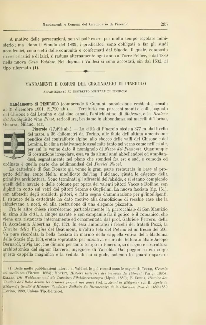 (1) Delle molte pubblicazioni intorno ai Valdesi, le più recenti sono le seguenti: Tocco, L'eresia jnel medio-ero (Firenze, 1884); Montet, Histoire Uttéraìre des Vaudois du Piémont (Parigi, 1885); ; Keller, Die Waldenser und die deutschen Bibelìlbersetzungen (Lipsia, 1889); E. Comba, Histoire des Vaudois de l'Italie depuis les origines jusqu'à nos jours (voi. I, Avant la Riforme; voi. II, Après la Riforme); Société