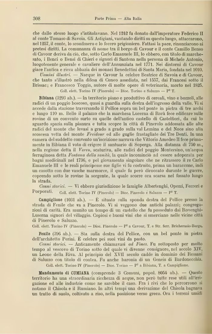 Coli, elett. Torino IV (Pinerolo) — Dioc. Pinerolo — P2 a Cavour, T. e Str. ferr. Bricherasio-Barge.