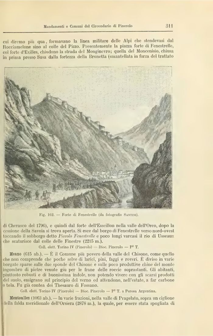 di Cherasco del 1796), e quindi dal forte dell'Esseillon nella valle dell'Orco, dopo la cessione della Savoia si trova aperta. Si esce dal borgo di Fenestrelle verso nord-ovest toccando il sobborgo detto Piccolo Fenestrelle e poco lungi varcasi il rio di Usseaux jj che scaturisce dal colle delle Finestre (2215 m.).