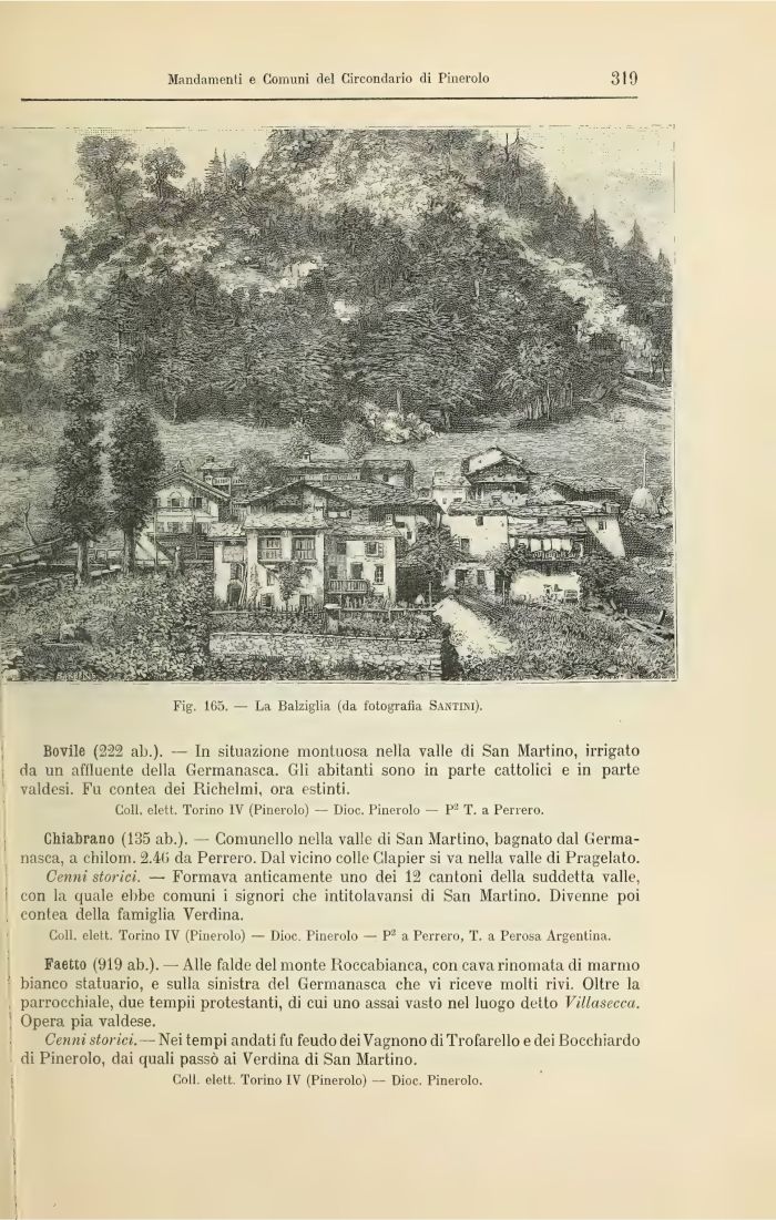 Faetto (919 ab.). — Alle falde del monte Roccabianca, con cava rinomata di marmo bianco statuario, e sulla sinistra del Germanasca che vi riceve molti rivi. Oltre la . parrocchiale, due tempii protestanti, di cui uno assai vasto nel luogo detto Villasecca. ; Opera pia valdese.