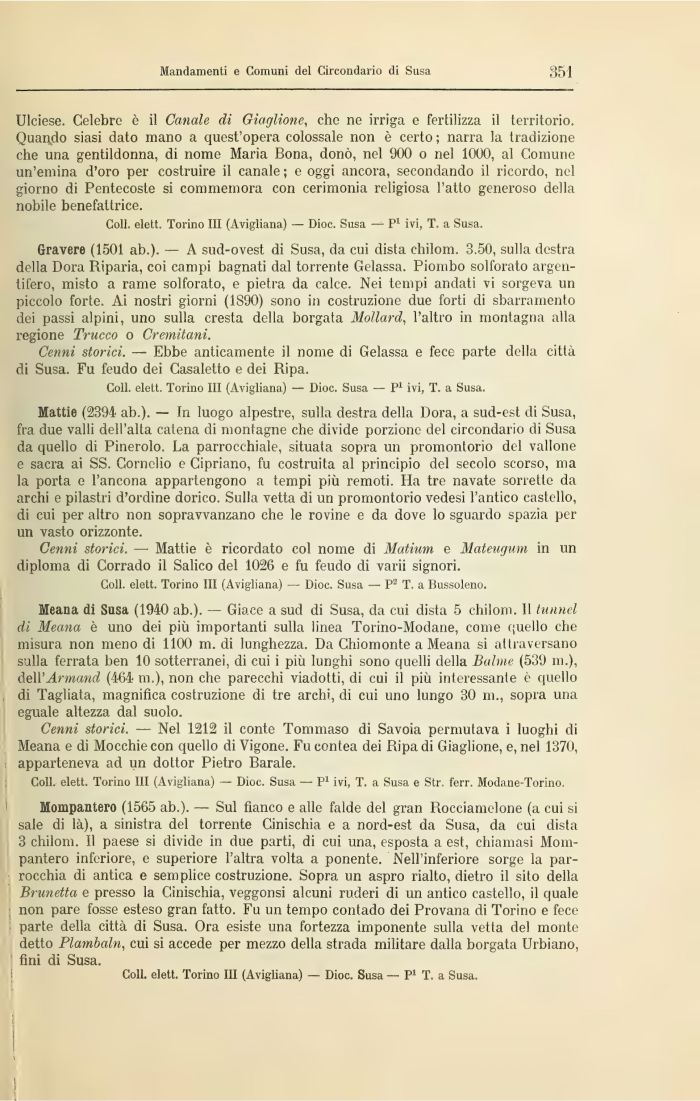 Coli, elett. Torino III (Avigliana) — Dioc. Susa — P1 ivi, T. a Susa e Str. ferr. Modane-Torino.