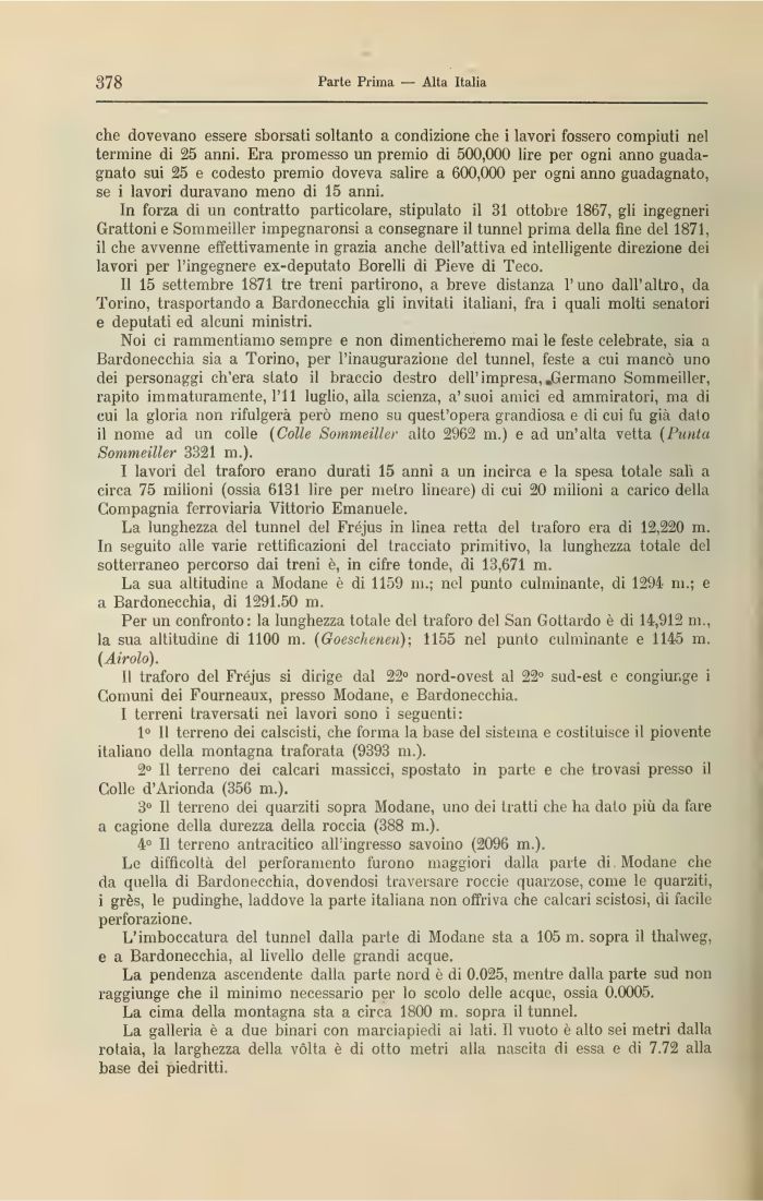 L'imboccatura del tunnel dalla parte di Modane sta a 105 m. sopra il thalweg, e a Bardonecchia, al livello delle grandi acque.