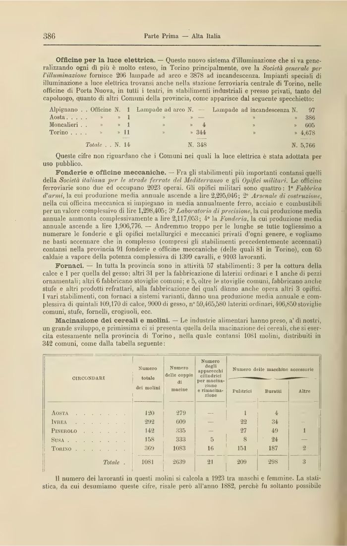 11 numero dei lavoranti in questi molini si calcola a 1923 tra maschi e femmine. La statistica, da cui desumiamo queste cifre, risale però all'anno 1882, perchè fu soltanto possibile