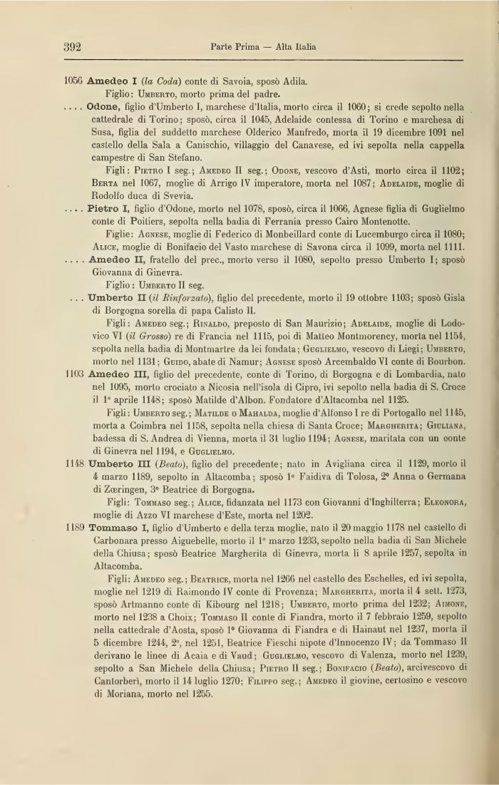 1189 Tommaso I, figlio d'Umberto e della terza moglie, nato il 20 maggio 1178 nel castello di Carbonara presso Aiguebelle, morto il 1° marzo 1233, sepolto nella badia di San Michele della Chiusa; sposò Beatrice Margherita di Ginevra, morta li 8 aprile 1257, sepolta in Altacomba.