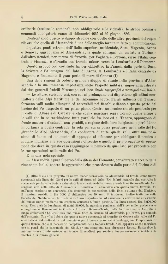 Una delle ragioni di codesto grande sviluppo di strade nella provincia d'Alessandria è la sua immensa importanza sotto l'aspetto militare, importanza rilevala dai due generali fratelli Mezzacapo nei loro Studi topografici e strategici sull'Italia.