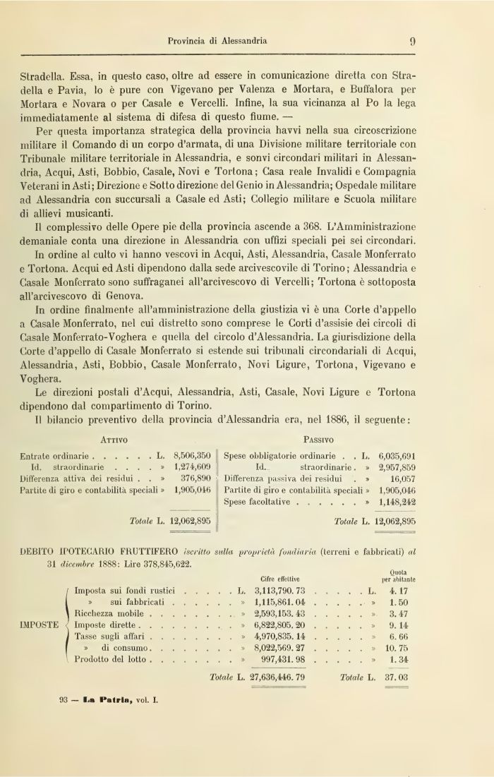 Il bilancio preventivo della provincia d'Alessandria era, nel 1886, il seguente: