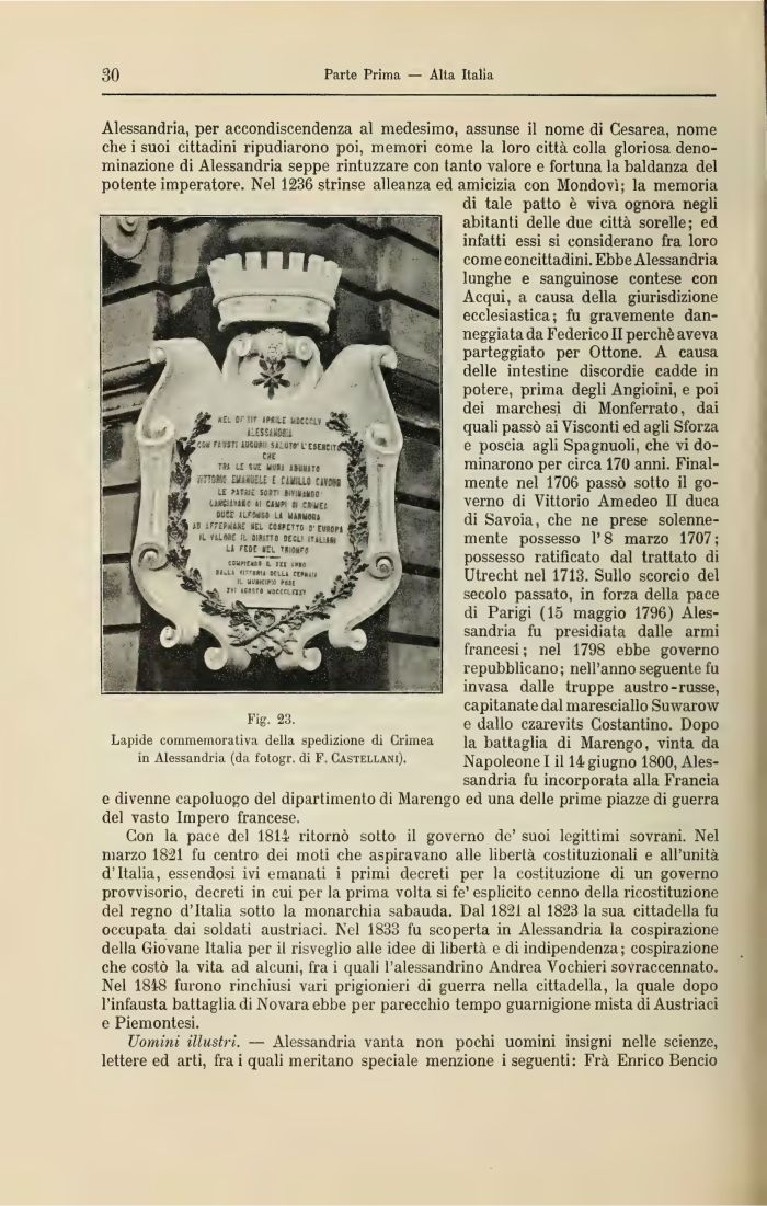 Lapide commemorativa della spedizione di Crimea in Alessandria (da fotogr. di F. Castellani).