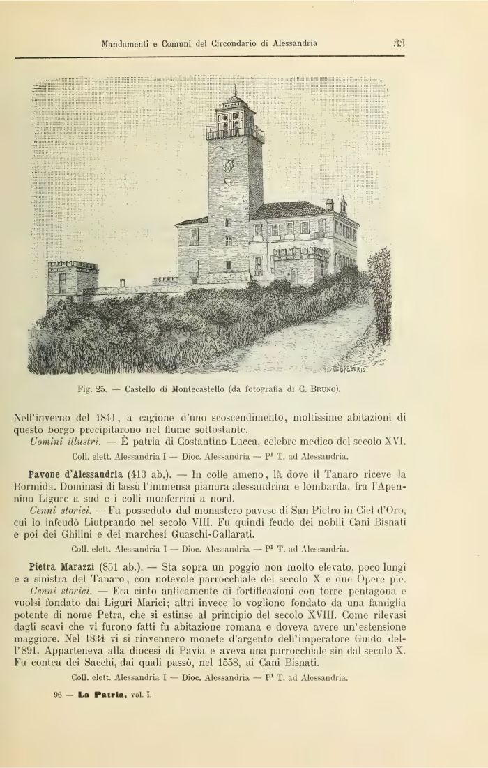 Pavone d'Alessandria (413 ab.). — In colle ameno, là dove il Tanaro riceve la Bormida. Dominasi di lassù l'immensa pianura alessandrina e lombarda, fra l'Apen-nino Ligure a sud e i colli monferrini a nord.
