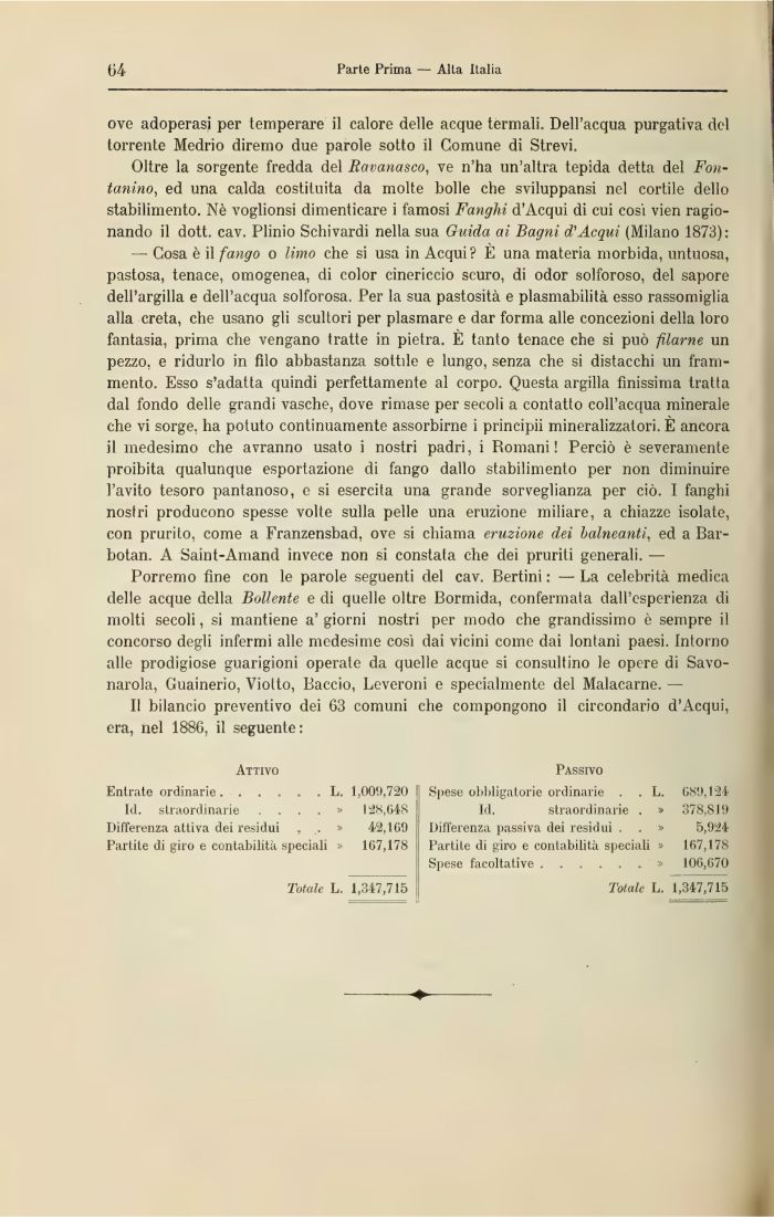 Il bilancio preventivo dei 63 comuni che compongono il circondario d'Acqui, era, nel 1886, il seguente: