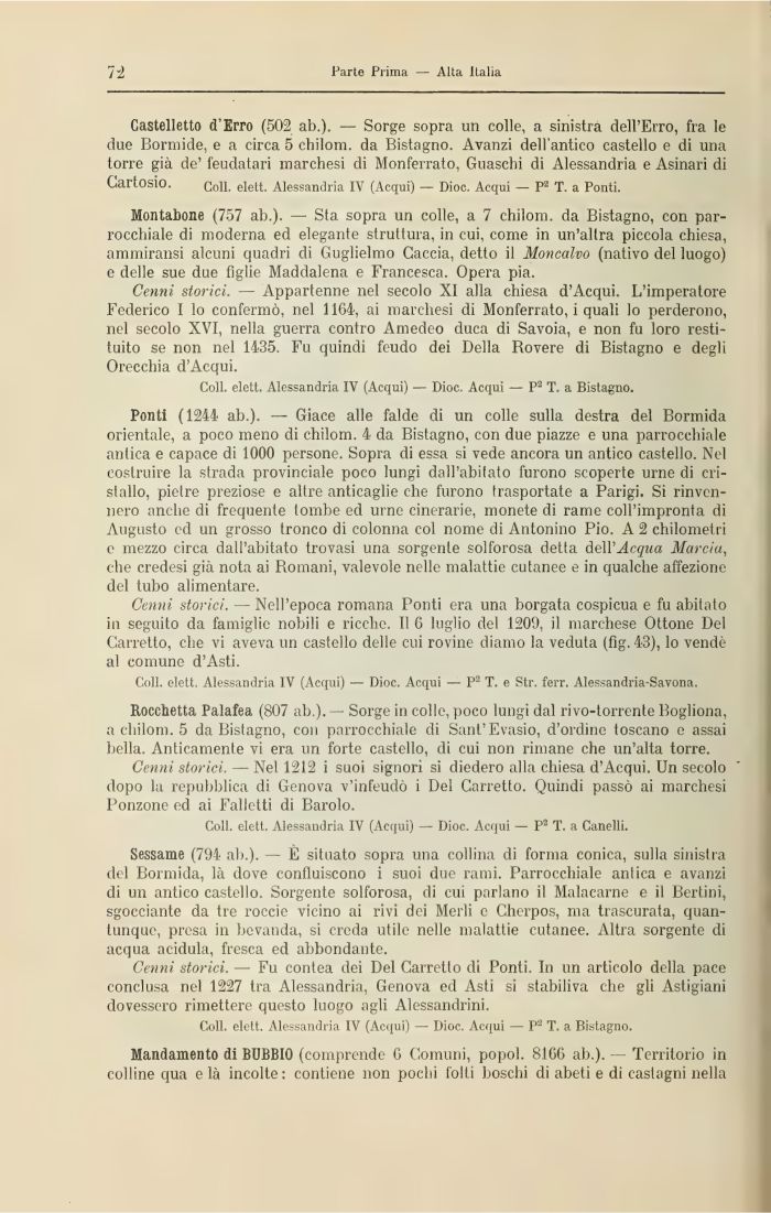 Coli, elett. Alessandria IV (Acqui) — Dioc. Acqui — P3 T. a Bistagno.