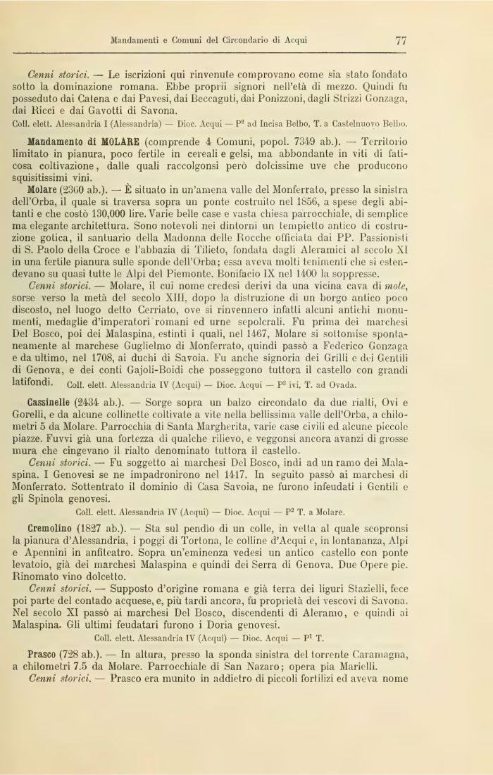 Coli, elett. Alessandria IV (Acqui) — Dioc. Acqui — P2 T. a Molare.