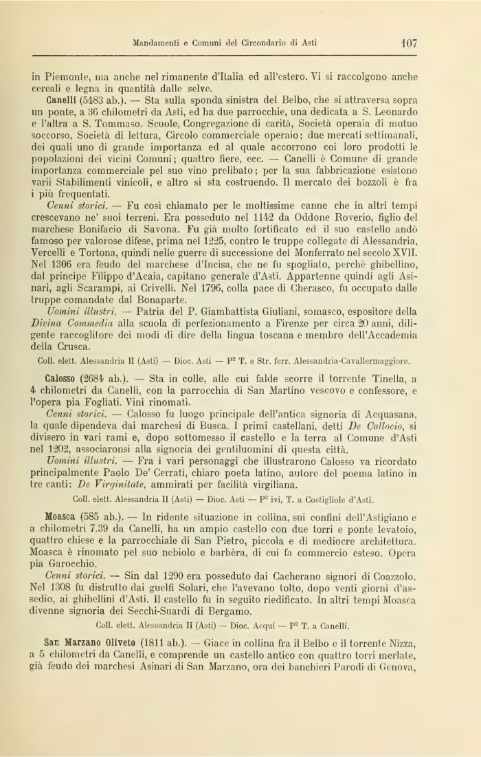 Coli, elett. Alessandria II (Asti) — Dioc. Acqui — P2 T. a Canelli.