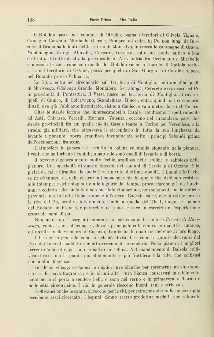 Il Rotaldo nasce nel comune di Ottiglio, bagna i territori di Olivola, Vignale, Gamagna, Conzano, Mirabello, Giarole, Pomaro, ed entra in Po non lungi da Boz-zole. Il Grana ha le fonti nel territorio di Moncalvo, interseca le campagne di Grana, Montemagno, Viarigi, Altavilla, Guccaro, traversa, sotto un ponte antico e ben costruito, il tratto di strada provinciale di Alessandria fra Occimiano e Mirabello e mescola le sue acque con quelle del Rotaldo vicino a Giarole. 11 Gattola scaturisce nel territorio di Ozzano, passa per quelli di San Giorgio e di Casale e sbocca nel Rotaldo presso Valmacca.