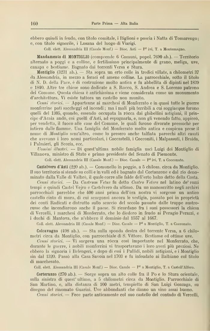 Coli, elett. Alessandria III (Gasale Monf.) — Dioc. Casale — P2 a Montiglio, T. a Cocconato.