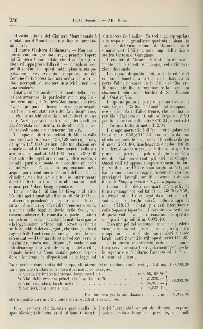 lìesiduo area per la tumulazione . , . mij. 301,945. 30 che è quanto dire in cifra tonda metri quadrati trtcentomila.