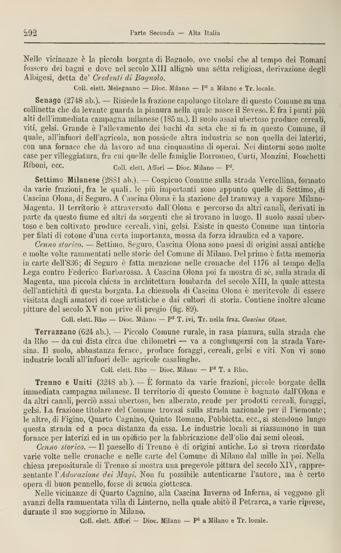 Coli, elett. Rho — Dioc. Milano — P'- T. ivi, Tr. nella i'raz. Cascina Olona.
