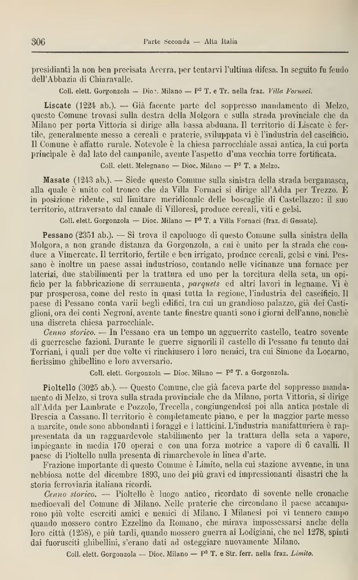 Coli, elett. Gorgonzola — Dioc. Milano — P2 T. e Str. ferr. nella fraz. Limito.