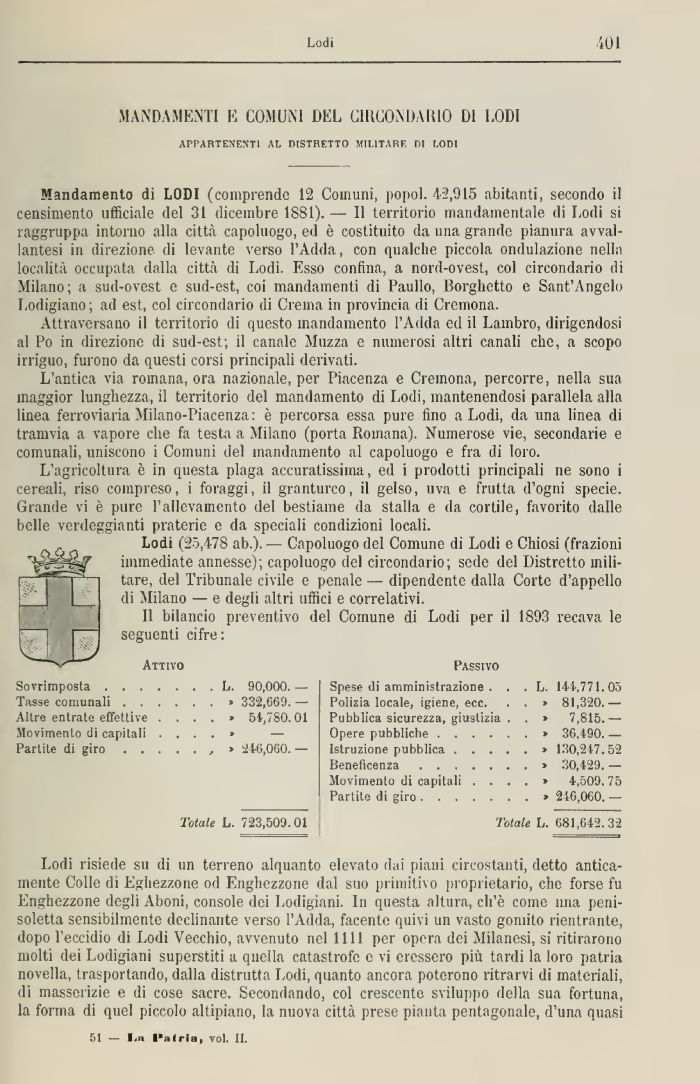 Il bilancio preventivo del Comune di Lodi per il 1893 recava le seguenti cifre: