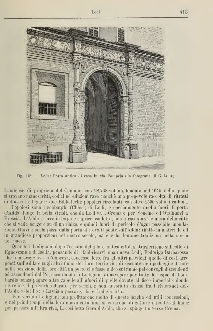 Fig. 118. — Lodi: Porla antica di casa in via Poiifcpeja (da fotografia di G. Lobej.