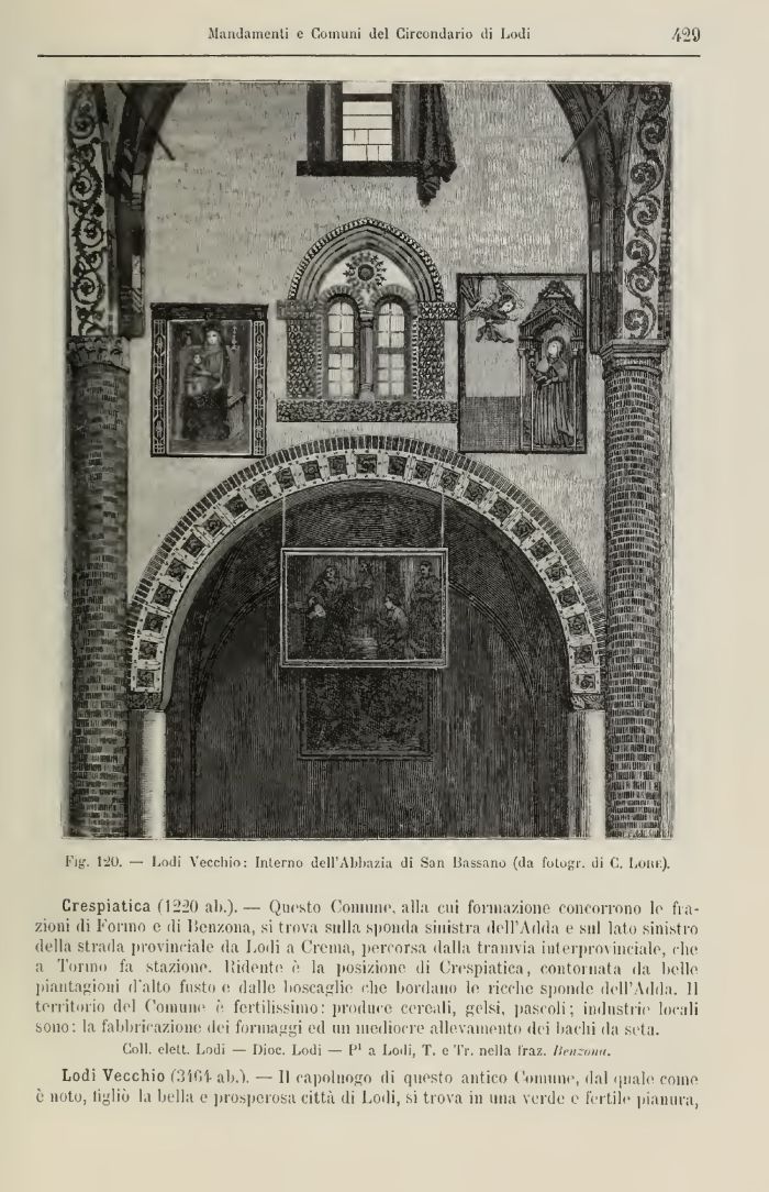 Fig. 1*20. — Lodi Vecchio: Interno dell'Abbazia di San Bassano (da fotogr. di C. Lour).