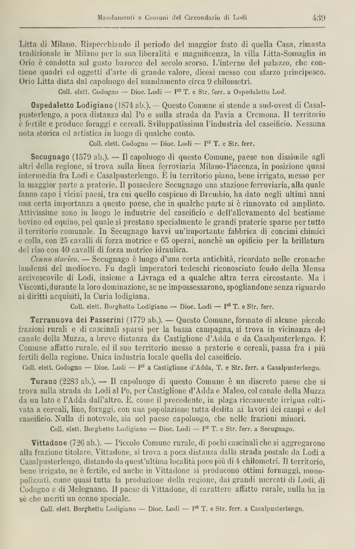Coli, elett. Codogno — Dioc. Lodi — P2 T. e Str. ferr. a Ospedalello Lod.