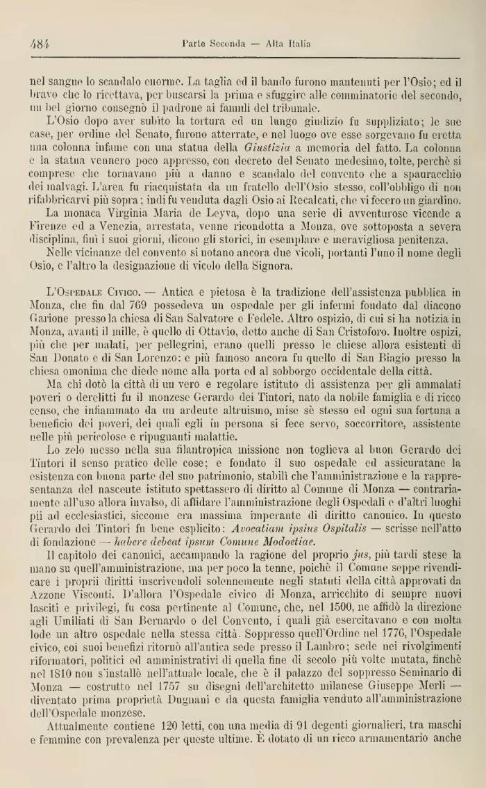 Ma chi dotò la città di 1111 vero e regolare istituto di assistenza per gli ammalati poveri 0 derelitti fu il monzese Gerardo dei Tintori, nato da nobile famiglia e di ricco censo, che infiammato da ini ardente altruismo, mise sè stesso ed ogni sua fortuna a beneficio dei poveri, dei quali egli 111 persona si fece servo, soccorri!ore, assistente nelle più pericolose e ripugnanti malattie.