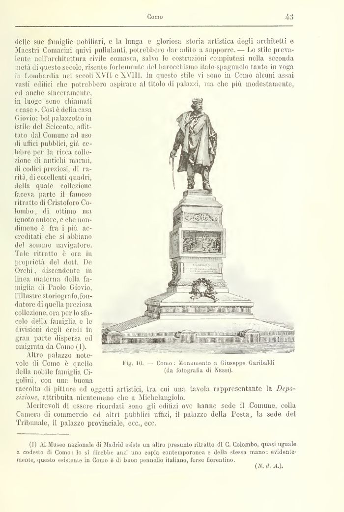 Altro palazzo notevole di Como è quello JTig. tu. — Como: Monumento a Giuseppe Garibaldi della nobile famiglia Ci- fotografia di Nessi). gol ini. con una buona