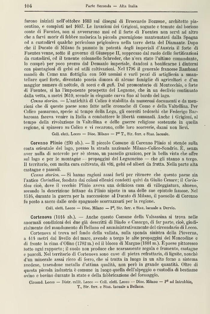 Coli, elett. Lecco — Dioc. Milano — P2, Str. ferr. e Staz. lacuale a Dervio.