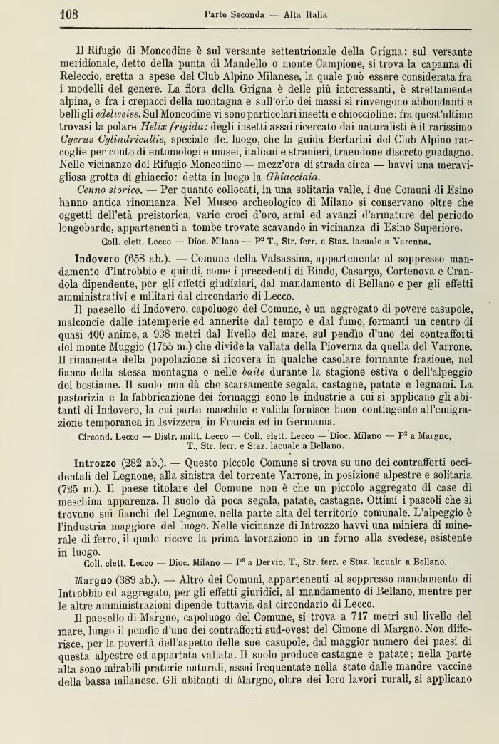 Margno (389 ab.). — Altro dei Comuni, •appartenenti al soppresso mandamento di lntrobbio ed aggregato, per gli effetti giuridici, al mandamento di Bollano, mentre perle altre amministrazioni dipende tuttavia dal circondario di Lecco.