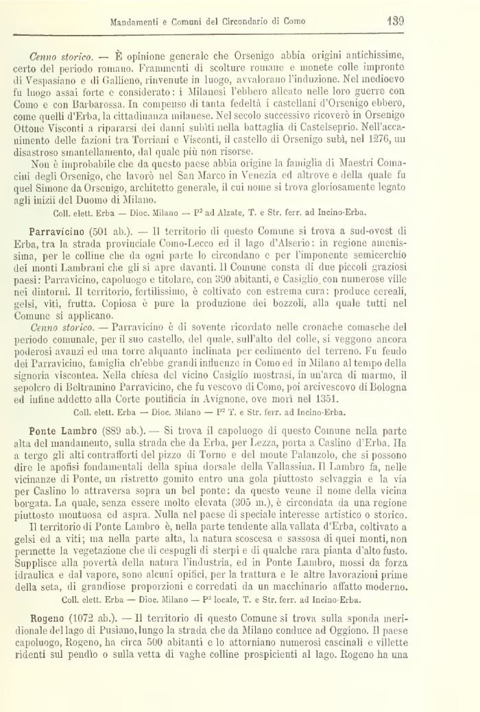 Coli, elett. Erba — Dioc. Milano — P3 ad Alzate, T. e Str. ferr. ad Incino-Erba.
