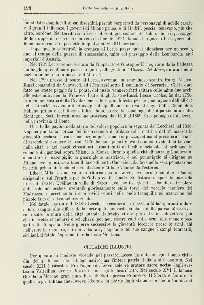 Nel 1784 Lecco venne visitata dall'imperatore Giuseppe II che, vinto dalla bellezza dei luoghi, quivi dimorò parecchi giorni, alloggiato all' Albergo del Moro, durato fino a pochi anni or sono in piazza del Mercato.