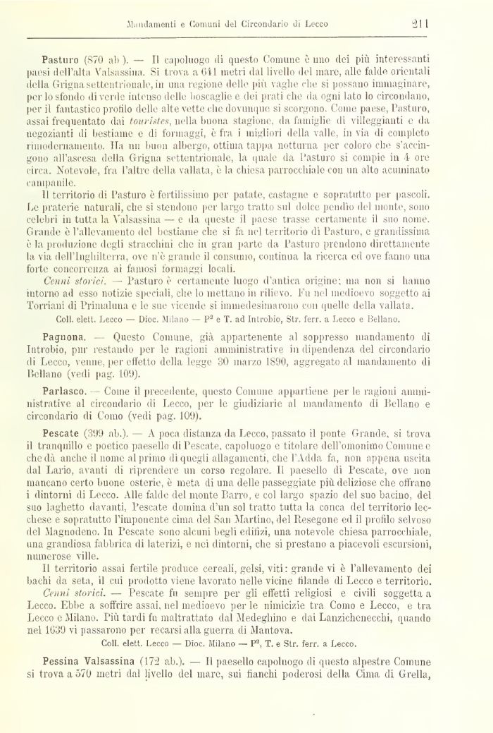 Paytiona. Questo Connine, già appartenente al soppresso mandamento di Introbio, pur restando per le ragioni amministrative 111 dipendenza del circondario di Lecco, venne, per effetto della legge 30 marzo 1890, aggregato al mandamento di Bollano (vedi pag. 109).
