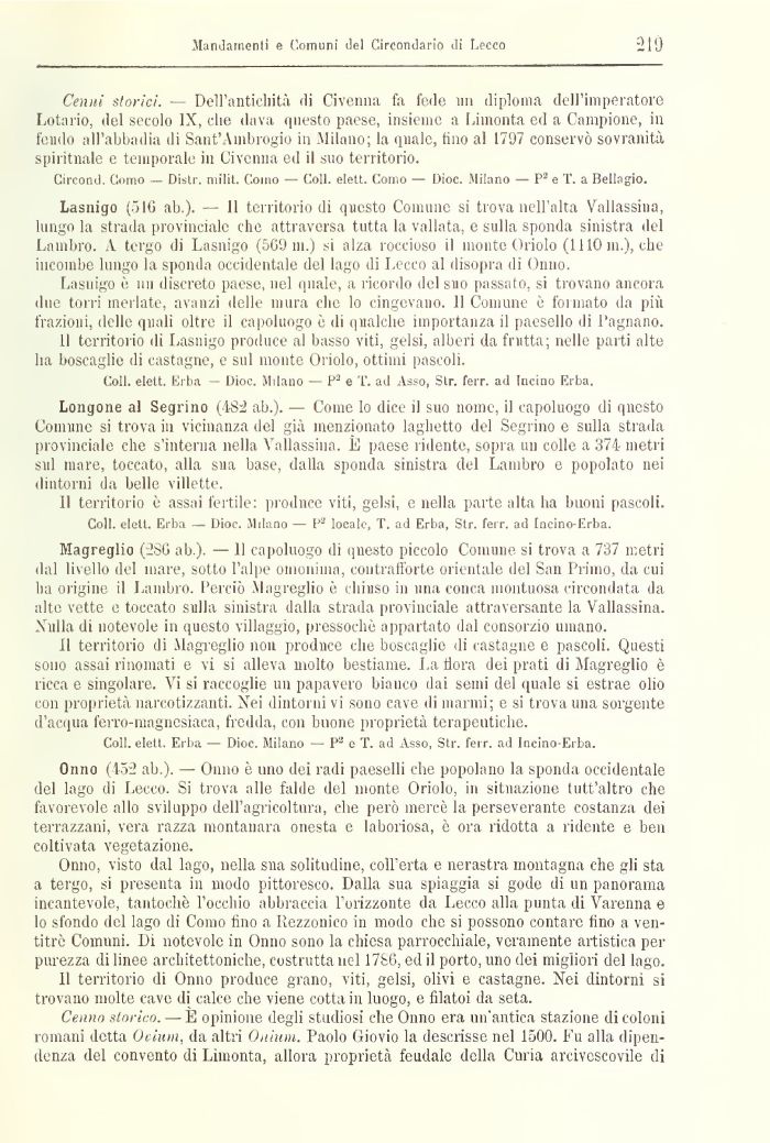 Circond, Como — Distr. rnilit, Como —• Coli, elett. Como -- Dioc. Milano — P3 e T. a Bellagio.