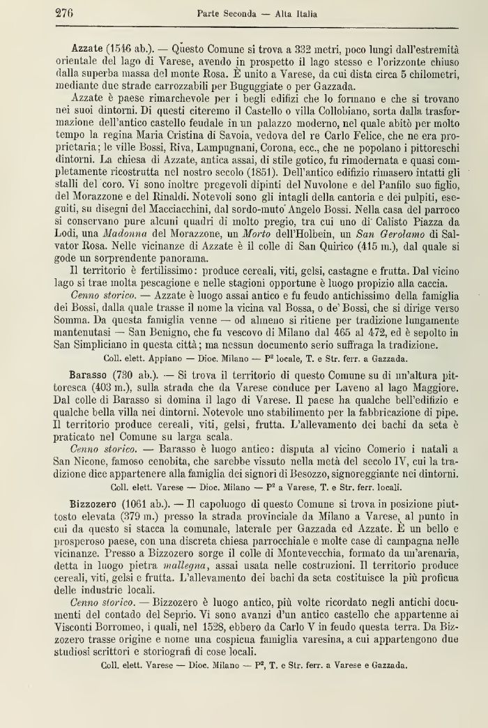 Coli, elett. Varese — Dioc, Milano — P3, T. e Str. ferr. a Varese e Gazzada.