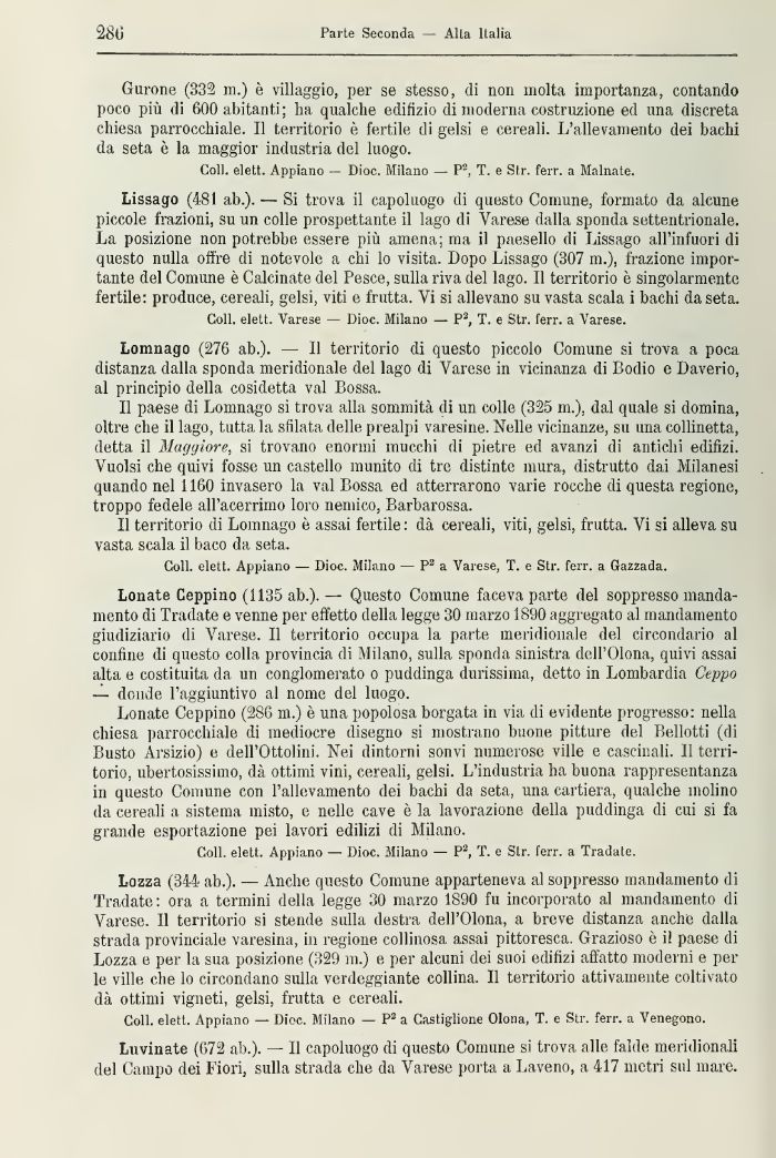 Coli, elett. Varese — Dioc. Milano — P3, T. e Str. ferr. a Varese.