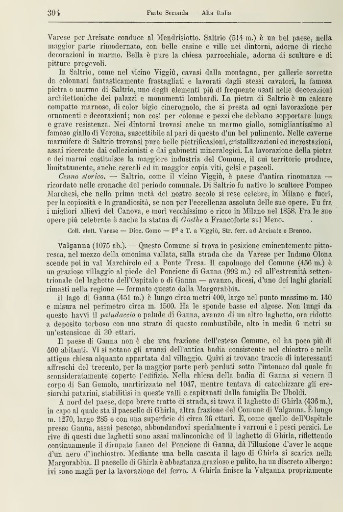 Varese per Arcisate conduce al Mendrisiotto. Saltrio (514 m.) è un bel paese, nella maggior parte rimodernato, con belle casino e ville liei dintorni, adorne di ricche decorazioni in marmo. Bella è pure la chiesa parrocchiale, adorna di sculture e di pitture pregevoli.