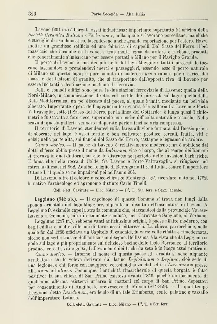 Laveno (205- in.) è borgata assai industriosa: importante sopratutto è l'officina della Società Ceramica Italiana