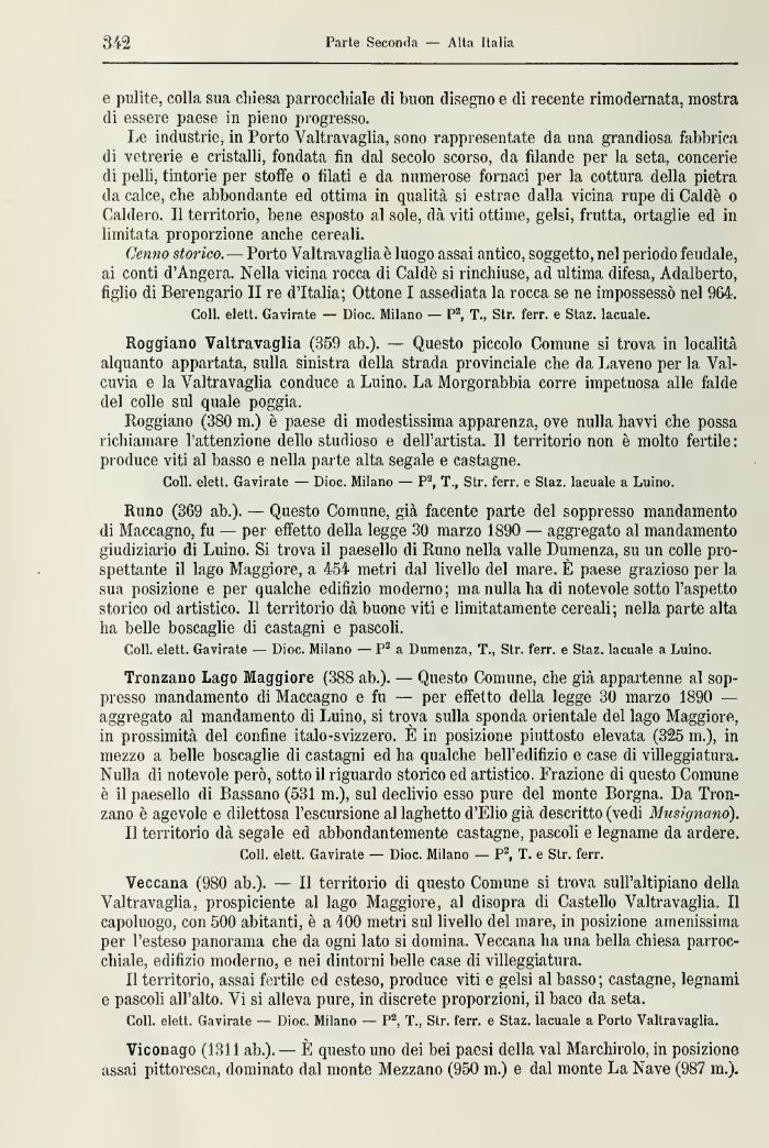 Viconago (1311 ab.). — È questo uno dei bei paesi della vai Marchirolo, in posizione assai pittoresca, dominato dal monte Mezzano (950 m.) e dal monte La Nave (987 m.),