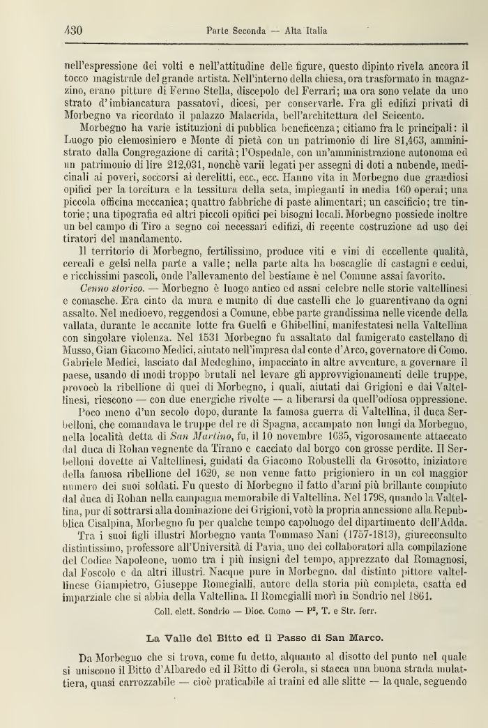 Da Morbegno che si trova, come fu detto, alquanto al disotto del punto nel quale si uniscono il Ditto d'Albaredo ed il Pitto di Gerola, si stacca una buona strada mulattiera, quasi carrozzabile — cioè praticabile ai traini ed alle slitte — la quale, seguendo
